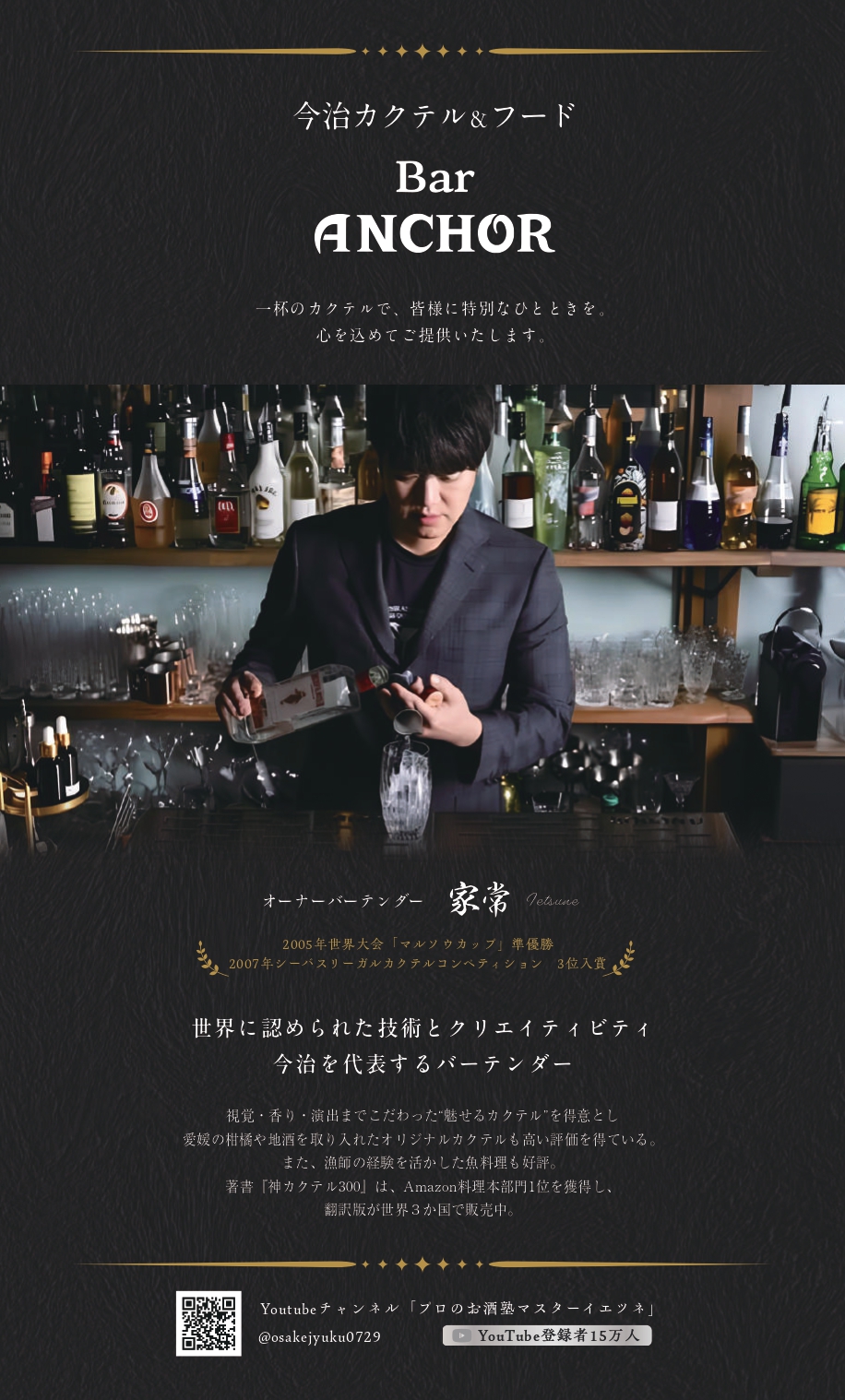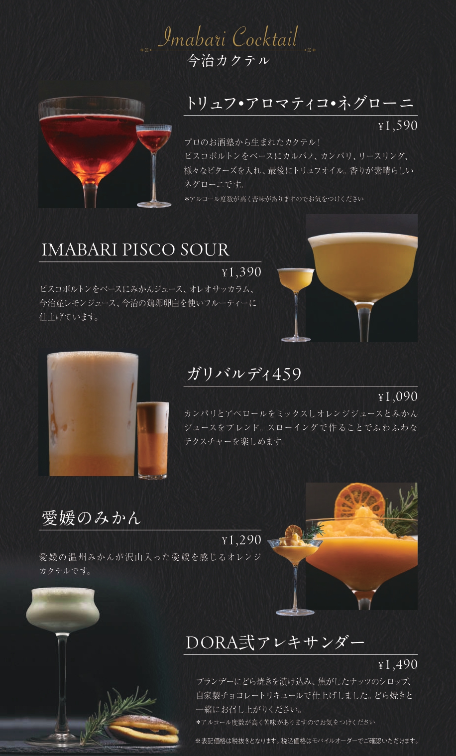 今治をフューチャーした本格的なカクテルと創作料理が楽しめるBAR